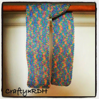 This next scarf is simple yet fun! I love the way multicolored yarn can make a knitting project look so unique! Rib stitch is fairly simple to do, there is just a ton of yarn movement.